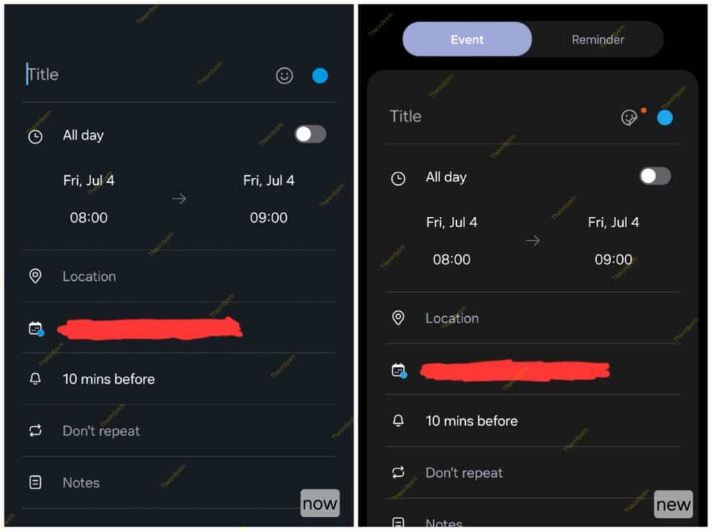 Samsung is internally testing the One UI 8 Beta update, and early leaks reveal a refreshed Calendar app with a modern, cleaner design. Screenshots shared by @theordysm on X show a deeper black background for better visual comfort, rounded event cards, updated icons, softer “Dismiss” and “Snooze” buttons for event alerts, and a new tabbed layout for creating Events and Reminders.