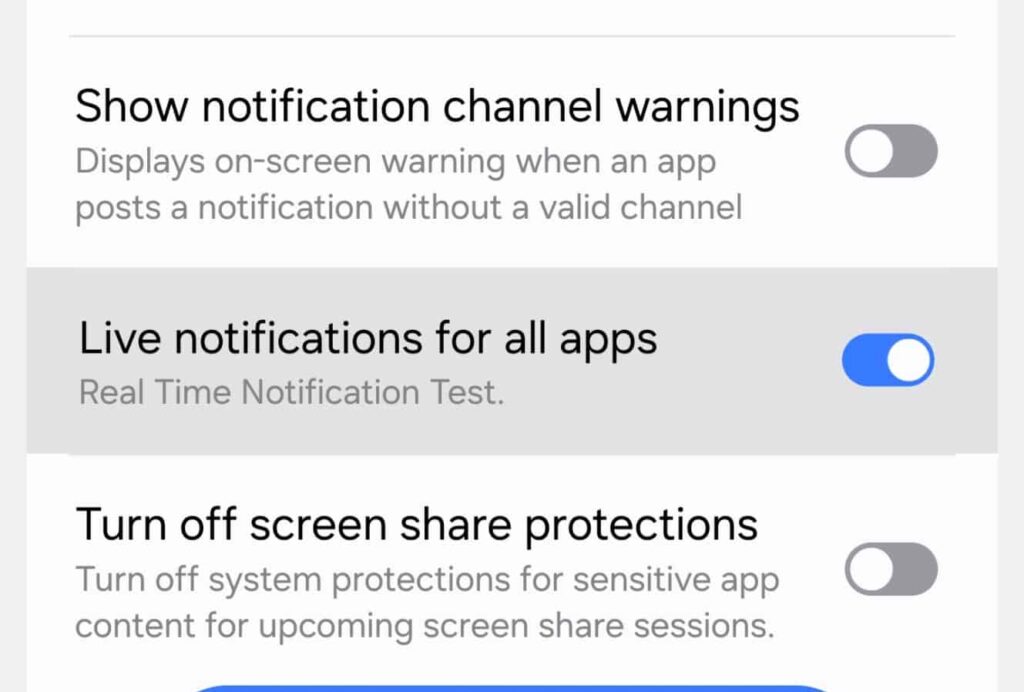 Mishaal Rahman from Android Authority shows this off using a demo app from Google, which is also what I’m using here. You also need to be on One UI 8 beta 3 or higher, which has a new toggle under developer options called Live notifications for all apps.