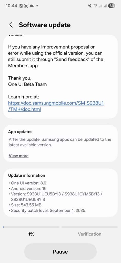 We can now confirm the availability of One UI 8 for unlocked models too. The Android 16-based update carries the same firmware build version BYI3 as the rest of the world. For non-beta users, the OTA download weighs in at around 4GB, while beta testers are receiving a lighter 500MB patch. To install the update, head to Settings > Software update > Download and install.