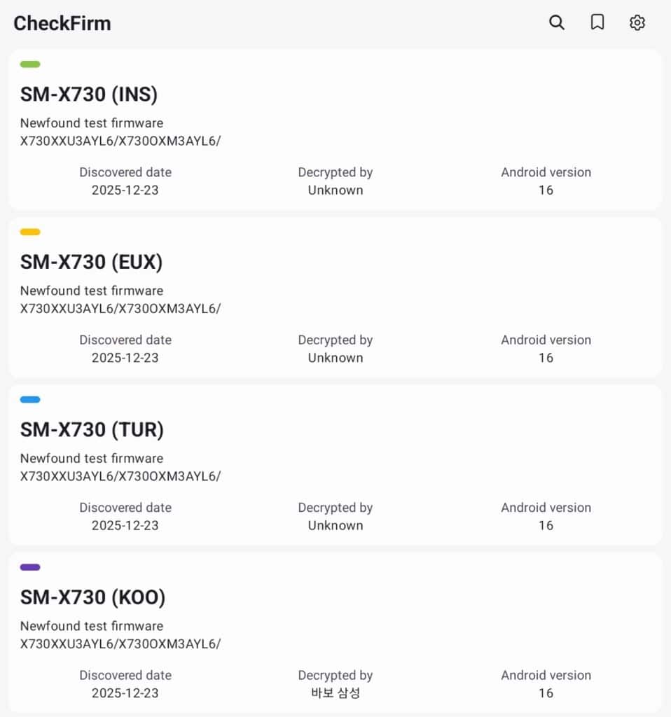 Samsung launched the Galaxy Tab S11 and Galaxy Tab S11 Ultra in early September this year. These came with One UI 8 based on Android 16 out of the box. Now, the company has started internal testing of One UI 8.5 for these tablets. As spotted by Alfaturk, the Galaxy Tab S11 Ultra Wi-Fi has appeared on test servers with the build version X930XXU3AYL6. At the same time, the Galaxy Tab S11 Wi-Fi carries the firmware version X730XXU3AYL6.