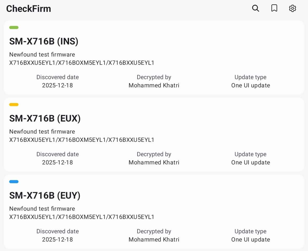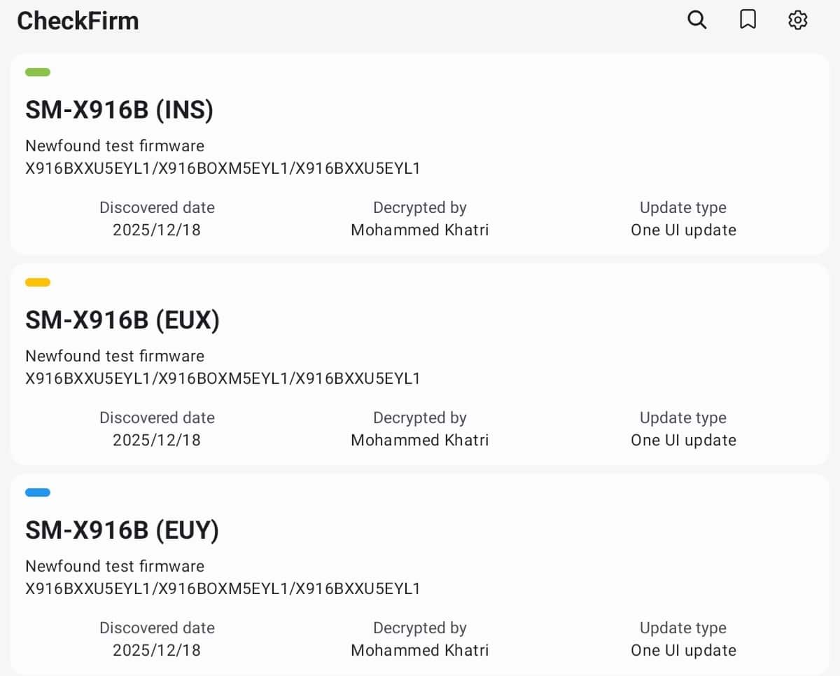 The entire Galaxy Tab S9 lineup has appeared with One UI 8.5 test builds on Samsung’s official servers, including both Wi-Fi and 5G variants. We have noticed test firmware for regions like India and Europe, with the latest build version being EYL1. We expect more tablet devices to enter internal testing soon. The Galaxy Tab S10 or Tab S11 series may show up next.