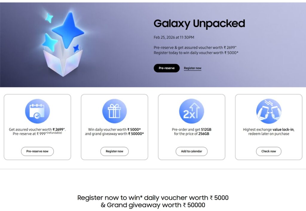 Samsung may have lowered its reservation credit for the Galaxy S26 series globally, but the most popular pre-order benefit appears to be sticking around. The company has now confirmed a free storage upgrade in India, following similar announcements in the UK and several European markets. Customers who pre-order the 256GB variant will receive the 512GB model at the same price.