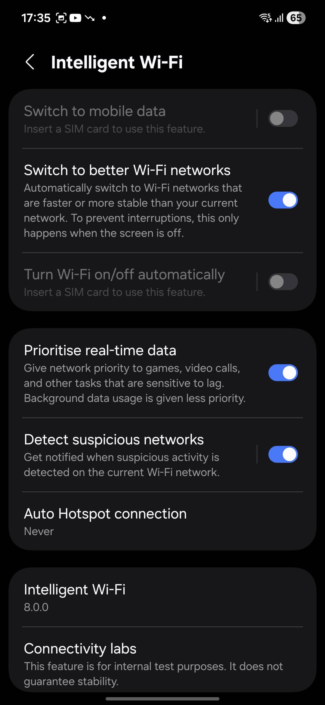 Connectivity Lab is a hidden feature for your Galaxy phone’s internet connections. It helps you control your Wi-Fi and mobile data in ways that the regular settings don’t allow. For example, you can see the strongest available Wi-Fi networks and set to switch to mobile data when Wi-Fi is slow.