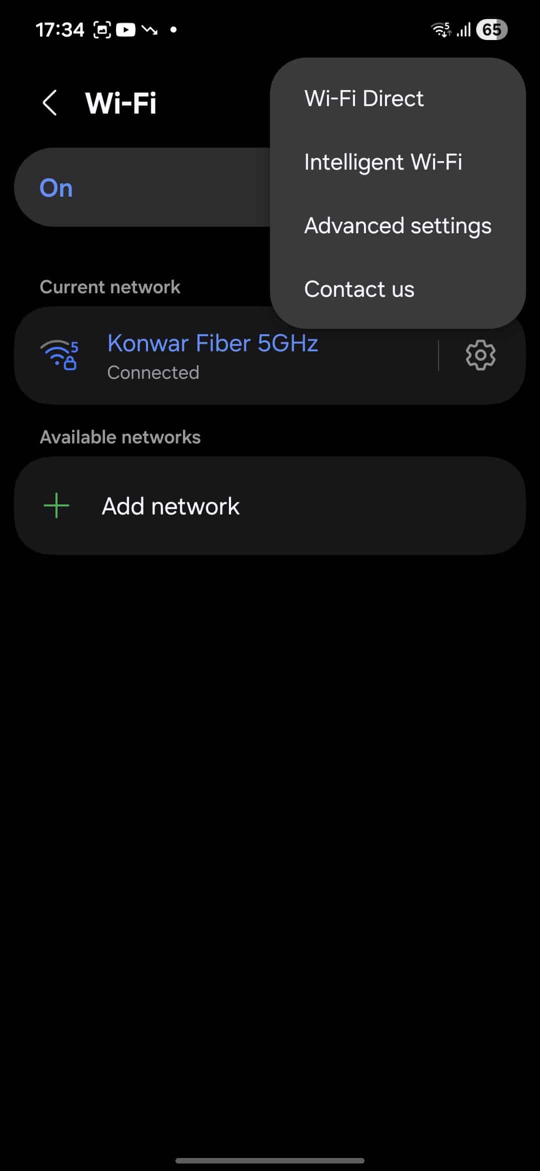 - Now tap the three dots in the top-right corner and select Intelligent Wi-Fi.
