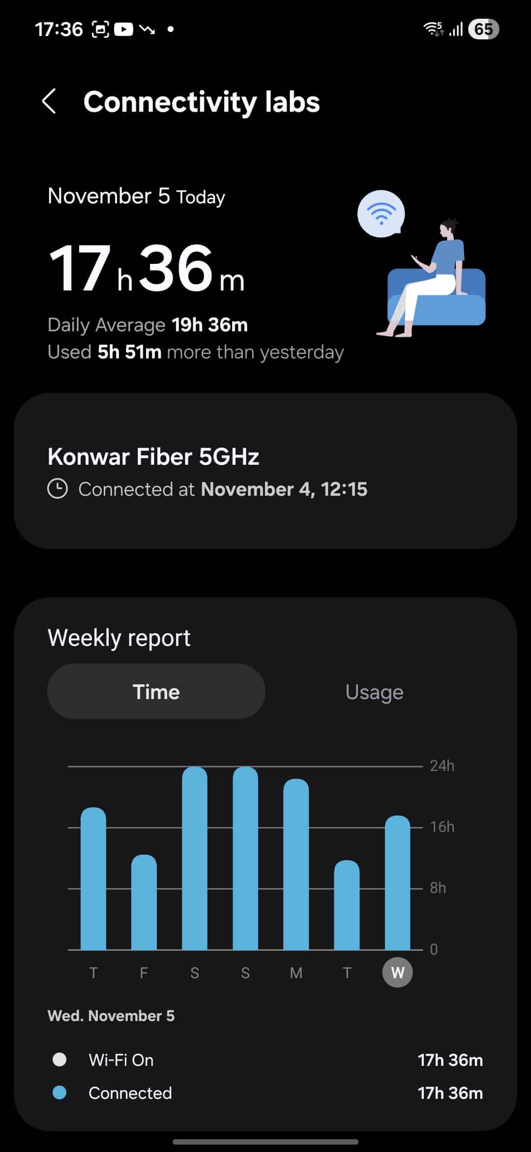 When you access Connectivity Lab, you will see the details of your connected Wi-Fi network. For example, the weekly report shows connection times and data usage. However, the main advantage of Connectivity Lab lies in its tools, which improve your connectivity experience.