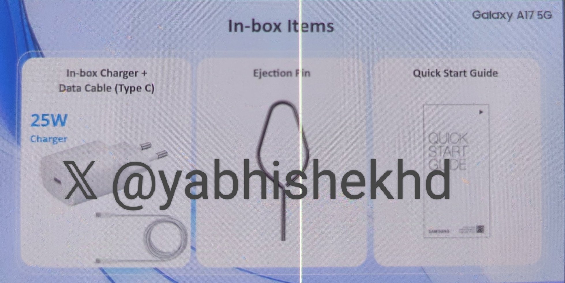 Meanwhile, tipster @yabhishekhd on X claims that Samsung will include a charger in the Galaxy A17 5G’s retail box in India. The phone supports 25W wired charging, and the company will offer a 25W power brick in the box. The tipster shared an image of what appears to be promotional material for the device. A similar image was previously leaked, showing off this possibility.