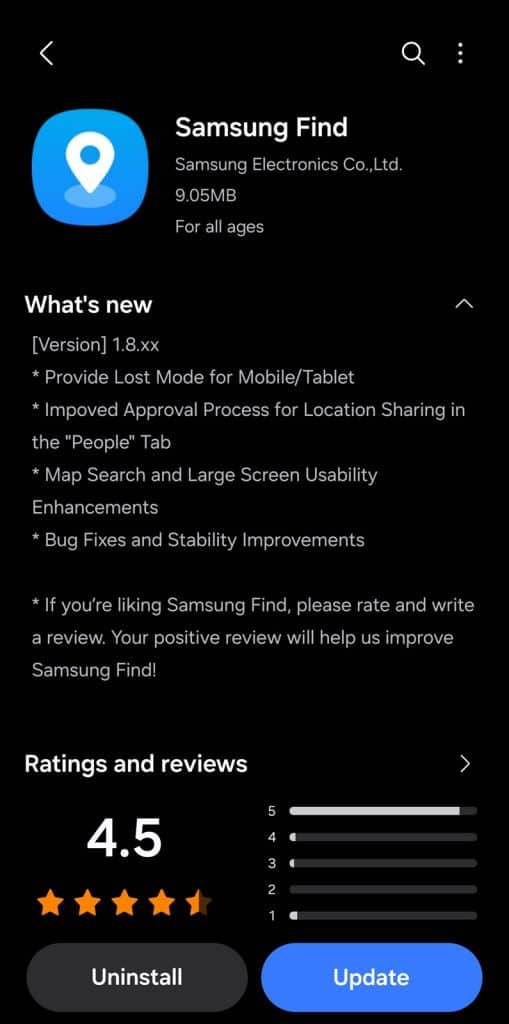 In addition to this, the latest Samsung Find update refines the approval process for location sharing. Sharing your location with other users via the People tab should now feel less cumbersome. This update also improves the Map Search experience, making it easier to track devices with higher accuracy and a cleaner visual presentation.