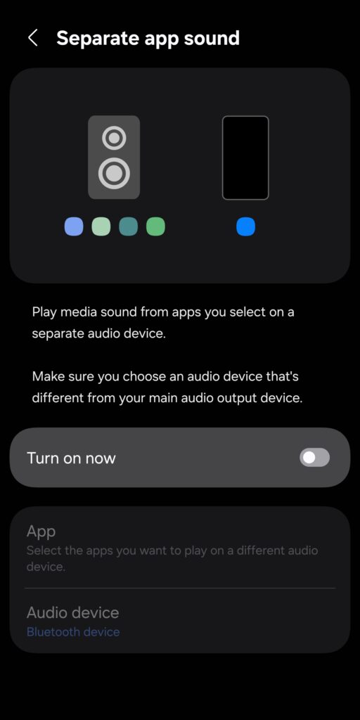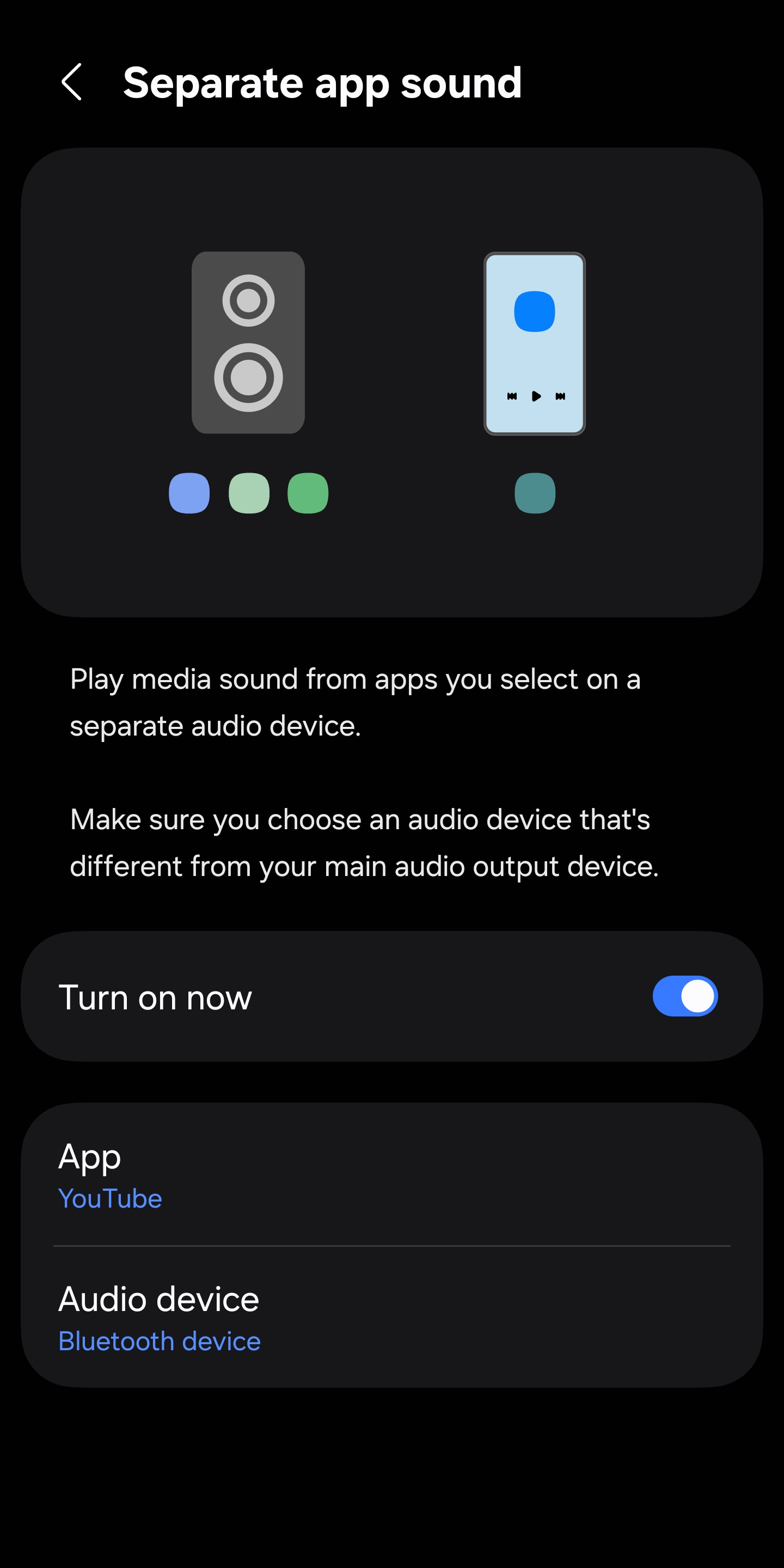 On computers, you can play sound from multiple apps simultaneously. You could have music playing in one app while a video plays in another. While smartphones do not typically offer this capability, Samsung Galaxy devices do. A feature called Separate app sound allows audio from different apps to play through different outputs at the same time.