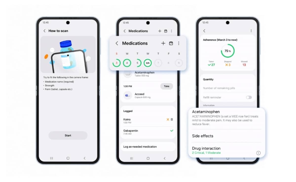 Last year, Samsung introduced medication tracking to its Health app. It allowed users to easily keep a record of medications and access relevant information, including potential side effects and drug interactions or food-related reactions. The company said it is one of the most frequently used features in Samsung Health. It is now improving the feature with new tools.
