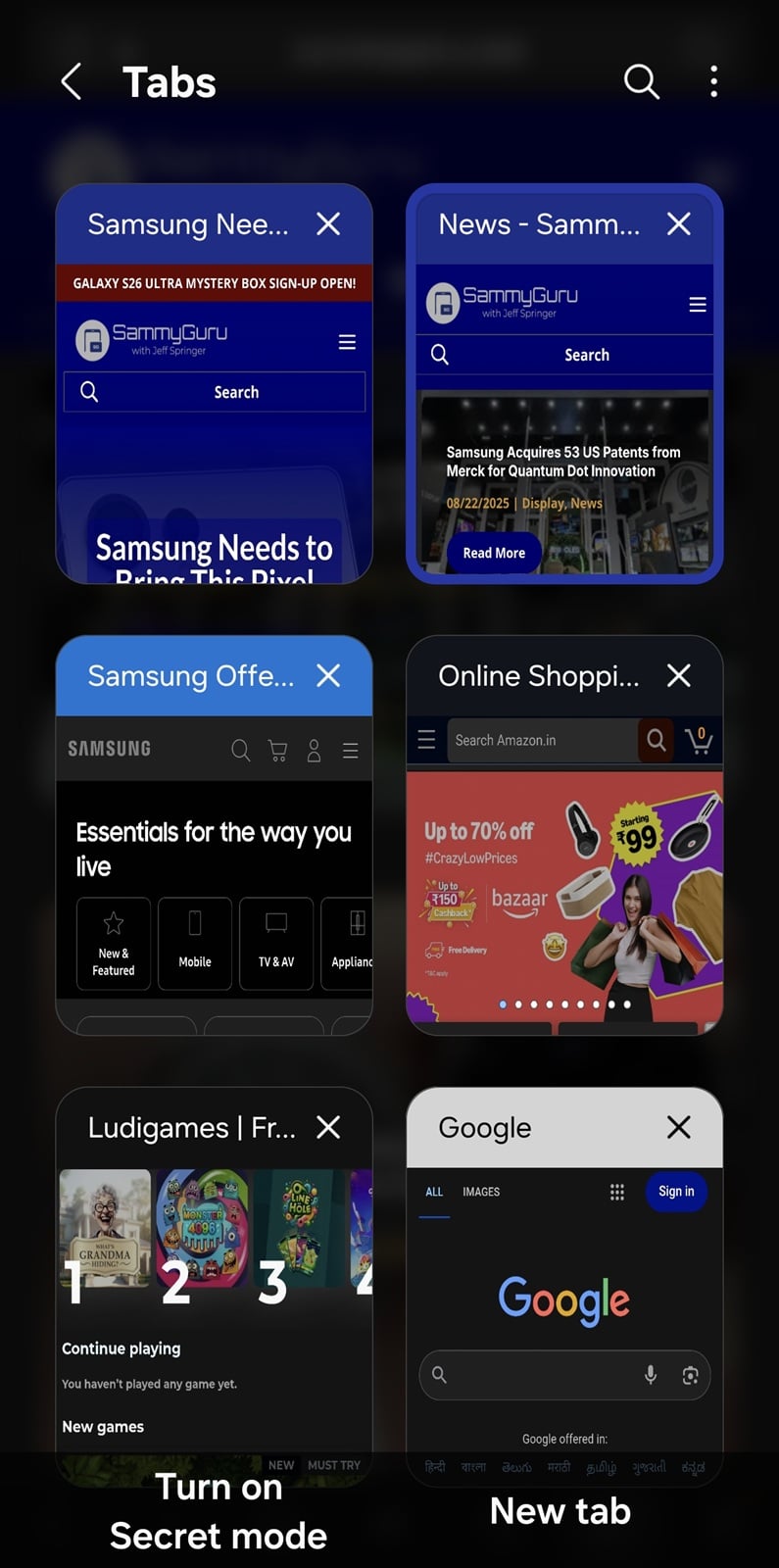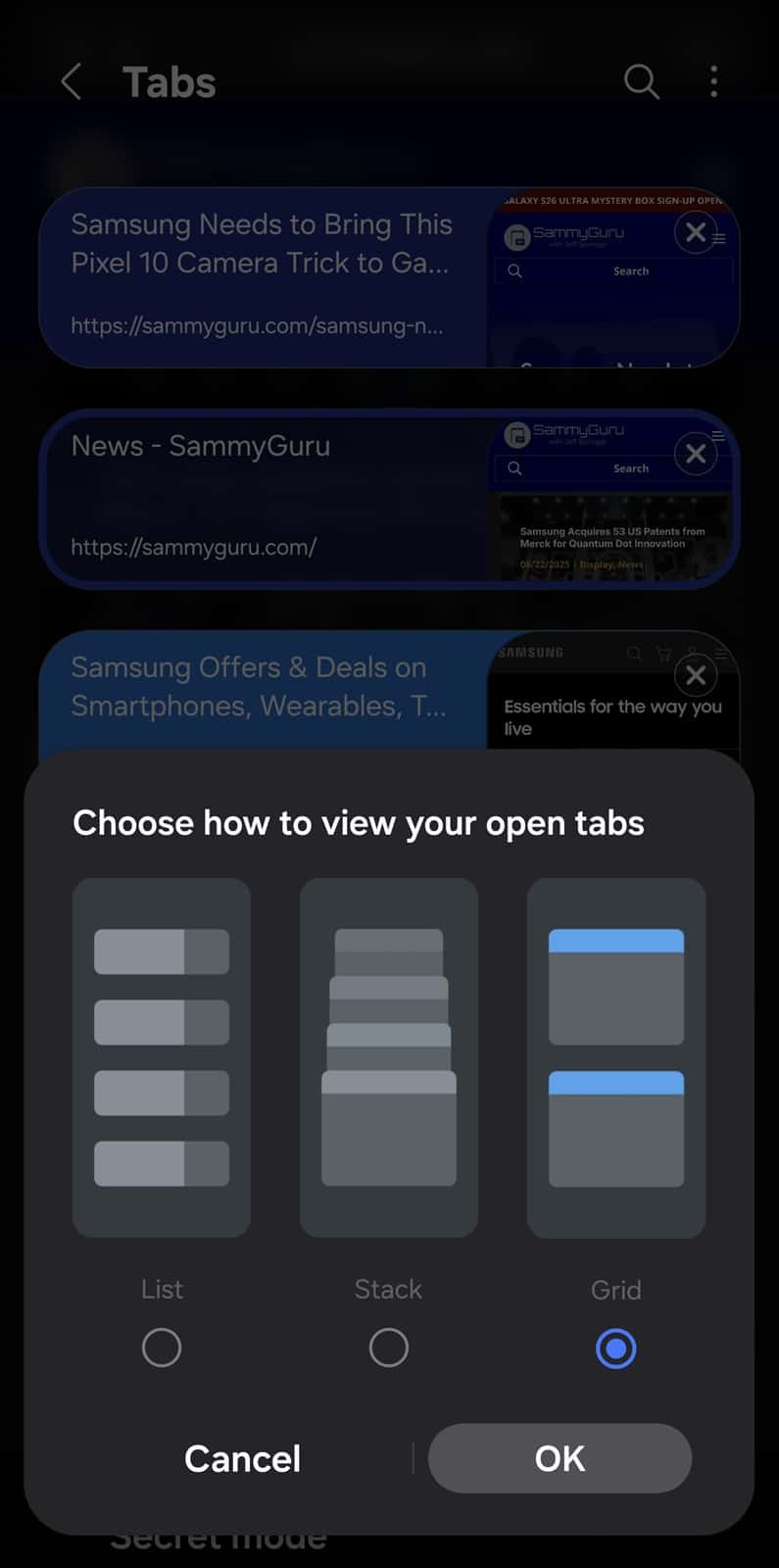 Samsung Internet Tip: Use Grid Layout for a Cleaner Tab Manager