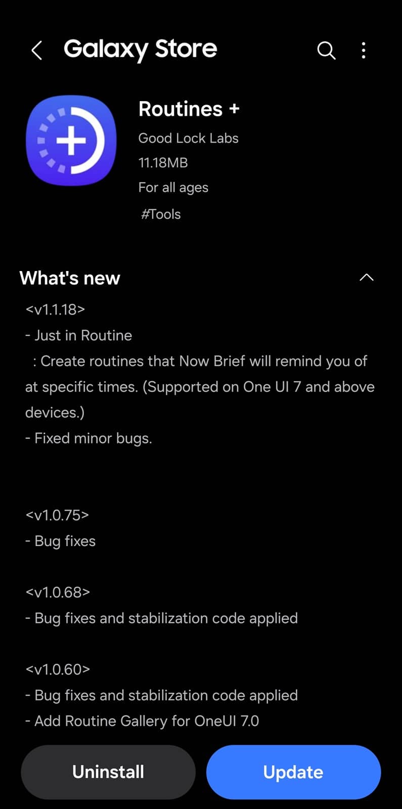 Besides the new feature, the latest update for Routines+ introduces a redesigned app icon and patches known bugs to make the app more stable and reliable. These refinements help ensure your routines run more smoothly and consistently. You can update the app from Good Lock or the Galaxy Store. Since the rollout began recently, it could take a while for the new version to show up for all Galaxy users worldwide.
