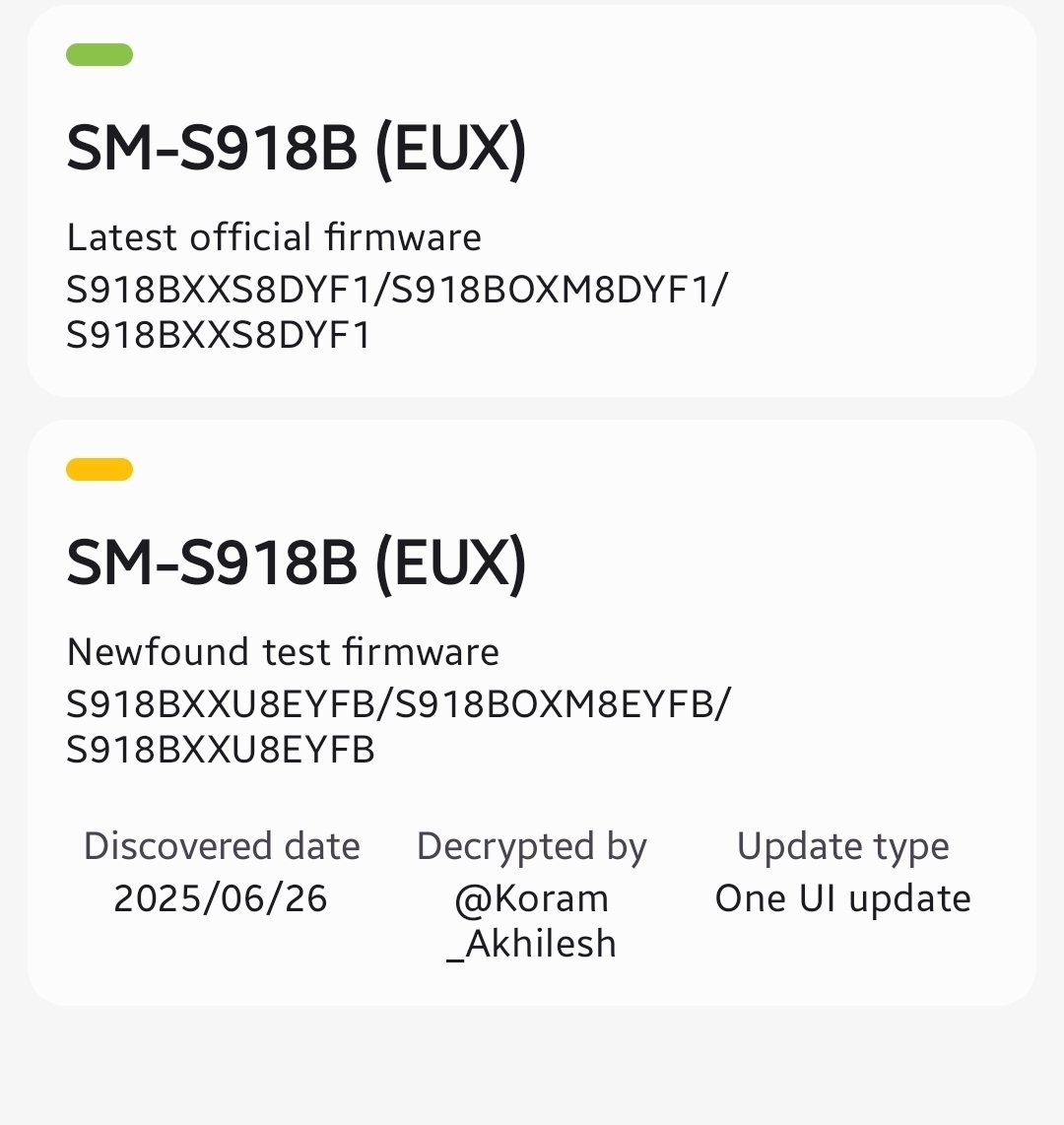 What’s surprising is that these build versions match the Galaxy S25 series (BYFB) — the latest One UI 8 build is YFB for all three lineups, as the first letter denotes the number of major Os upgrades for the device. This consistency across all three flagship generations suggests that Samsung may soon roll out the stable One UI 8 update for the Galaxy S24 and S23 series as well, skipping the usual beta phase.