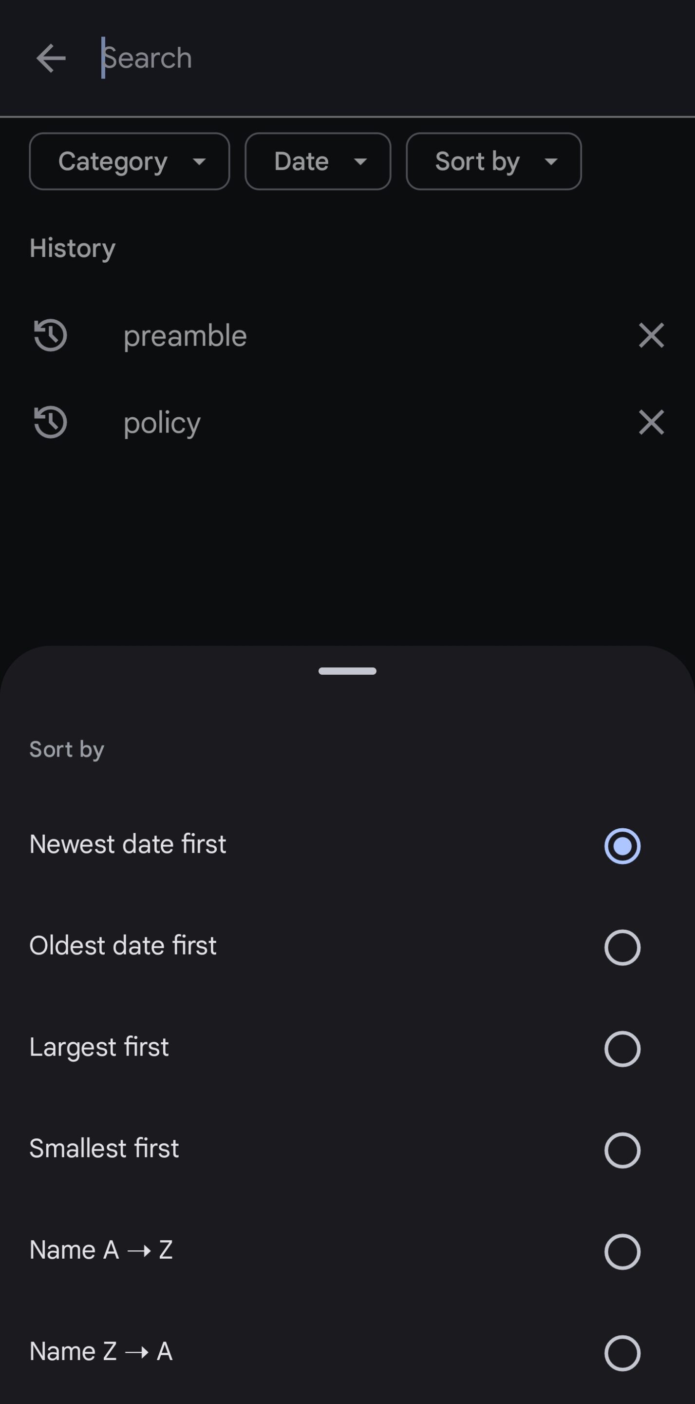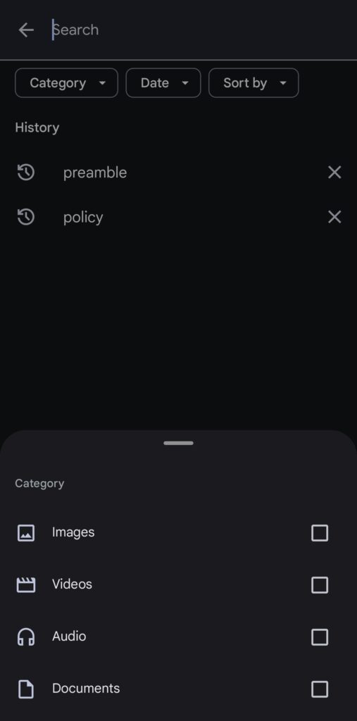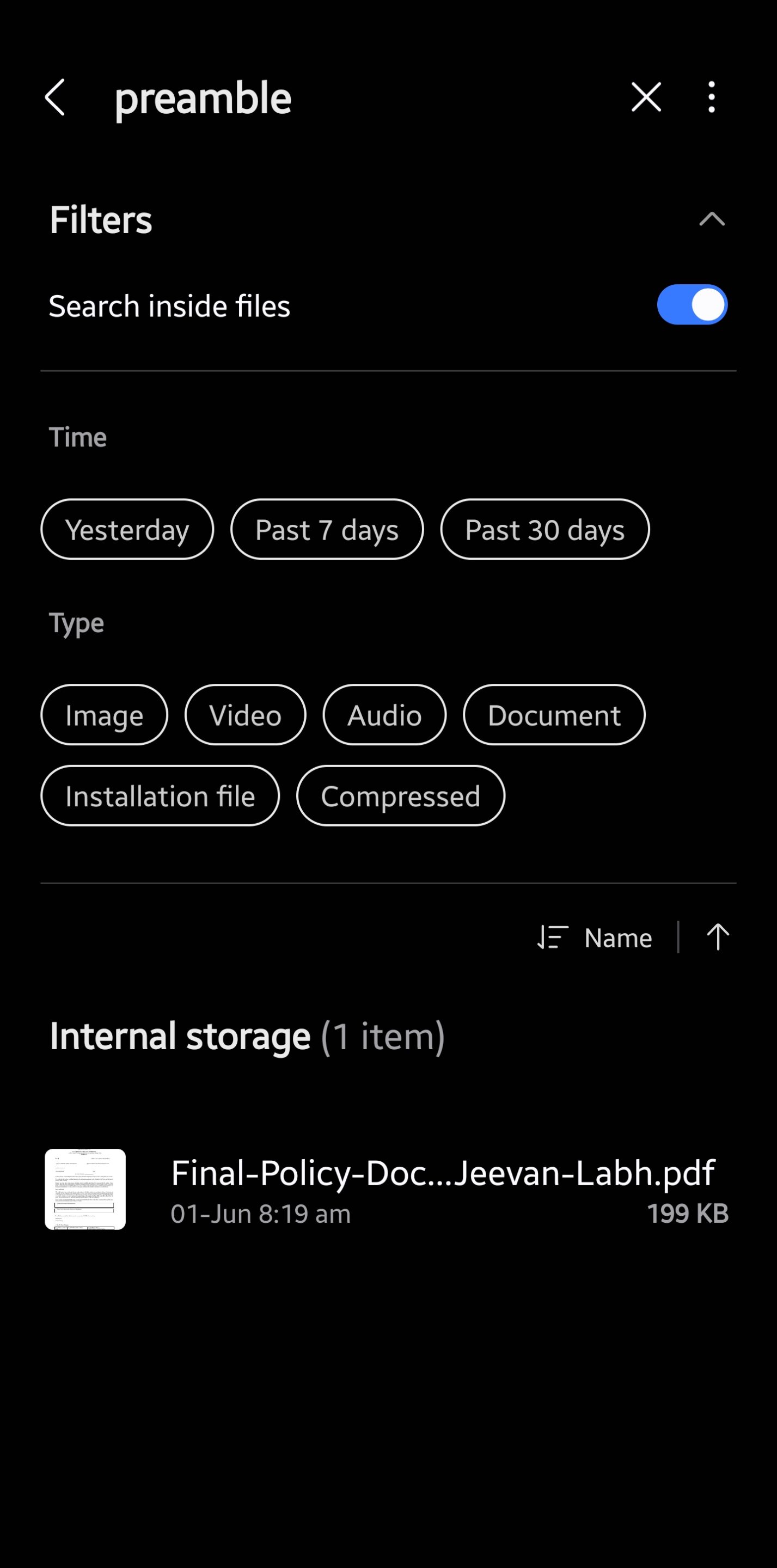 Otherwise, the search tool works similarly on both apps. You can search files by their names and filter the results according to file type and time. Your recent searches are shown at the bottom. I also find Samsung Files’ chips-based filtering and sorting more convenient than Google Files’ dropdown buttons. It’s an extra step on the latter. Moreover, Google offers fewer filtering options than Samsung, though its date range and sorting options are better. The “Search inside files” is a big tool that Google should offer.
