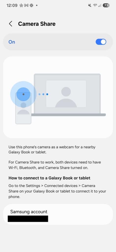 If you use a Galaxy Book, One UI 7.0 lets you use your phone as a webcam for your laptop. The new Camera Share feature facilitates this cross-device camera access. All it requires is Bluetooth and Wi-Fi. You can also similarly access your files on the phone from Galaxy Book with the Storage Share function. These features deepen the integration between various Samsung products.