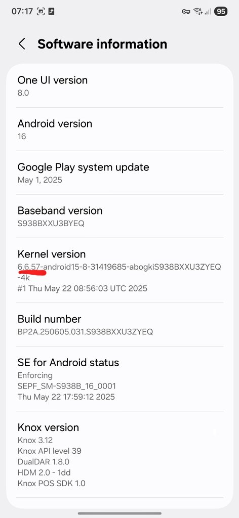 Samsung updated the kernel version in the latest One UI 8 internal build