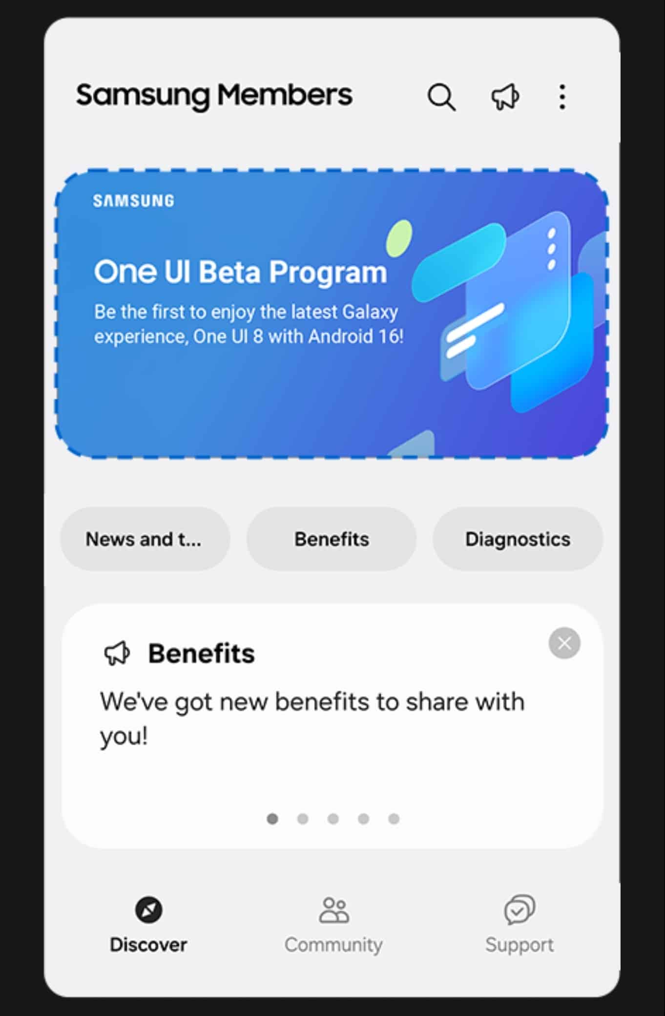 Samsung has also introduced a permanent “Beta Program Home” within the Members app. This new section remains visible at all times, not just during active beta periods. It serves as a centralized hub for joining current beta tests and accessing helpful resources through a new feature called “Beta Tips.”