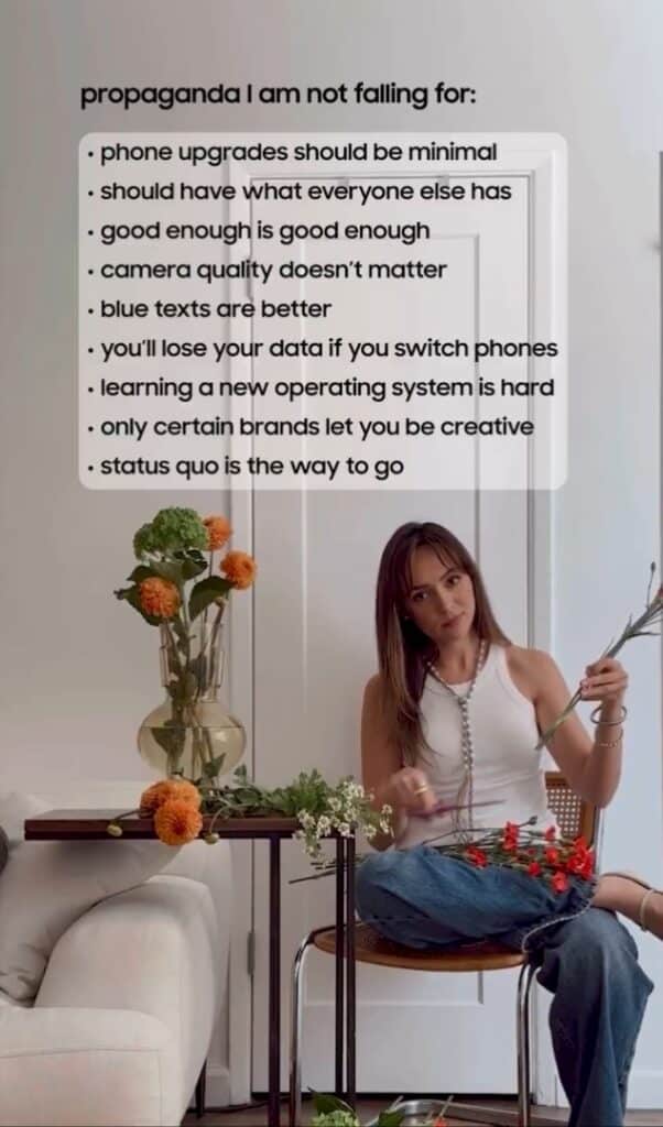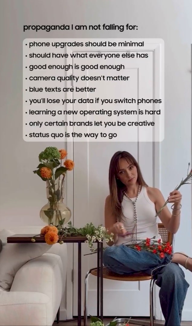These lines aren’t random — they mirror some of the most persistent arguments often associated with Apple’s ecosystem. For example, the line “blue texts are better” is a direct jab at Apple’s iMessage bubble divide. It creates a cultural divide between iOS (blue) and Android (green) users. Similarly, “you’ll lose your data if you switch phones” and “learning a new operating system is hard” reference concerns around switching from iPhone to Android, concerns Samsung wants to squash.