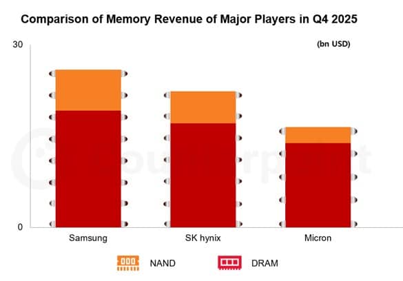 Samsung led the Q4 2025 DRAM market by revenue, thanks to a huge price boost