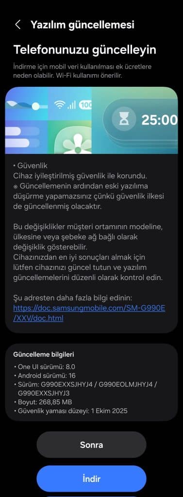 Samsung’s Galaxy S21 FE is now part of the quarterly security update schedule. That means the phone will receive four updates per year instead of monthly releases. It has now received the October 2025 security update with firmware version G990EXXSJHYJ4. The build comes with an OTA size of around 268 MB. If you live in Vietnam and have the S21 FE, you can install it by heading over to Settings > Software update > Download and install. Once downloaded, you need to restart to complete the installation.
