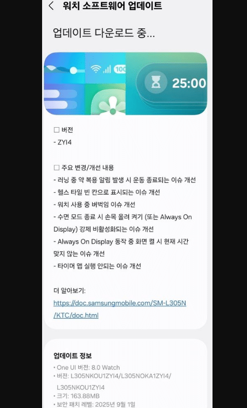 Speaking of fixed issues, the update addresses a problem where exercise sessions would end suddenly if a medication reminder alert occurred during a run. Furthermore, it fixes a bug where the ‘Raise wrist to wake’ feature was forcibly disabled upon exiting sleep mode. It also ensures that the time displayed on Always On Display is correct. Other fixes include the health tile displaying as a blank space, stuttering while using the watch, and the timer app failing to run.