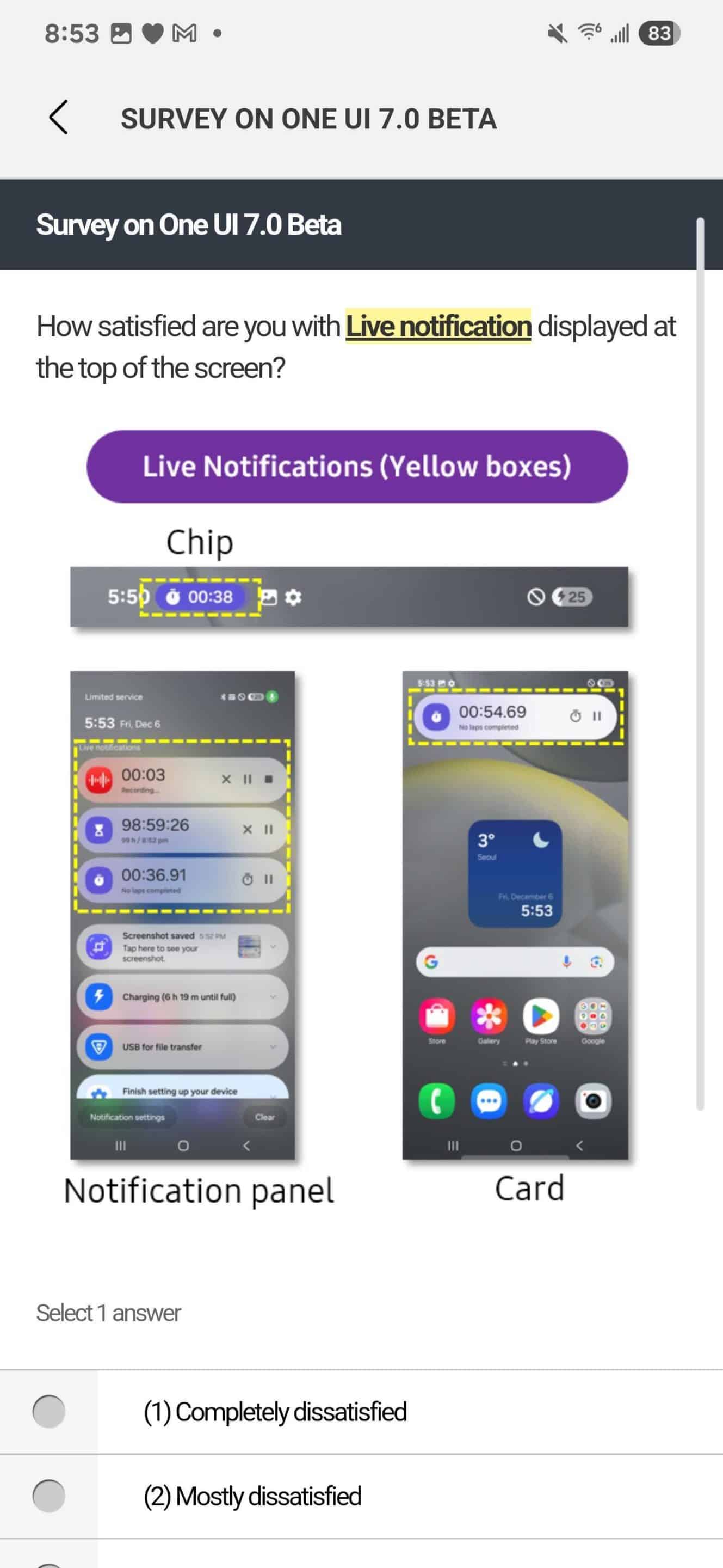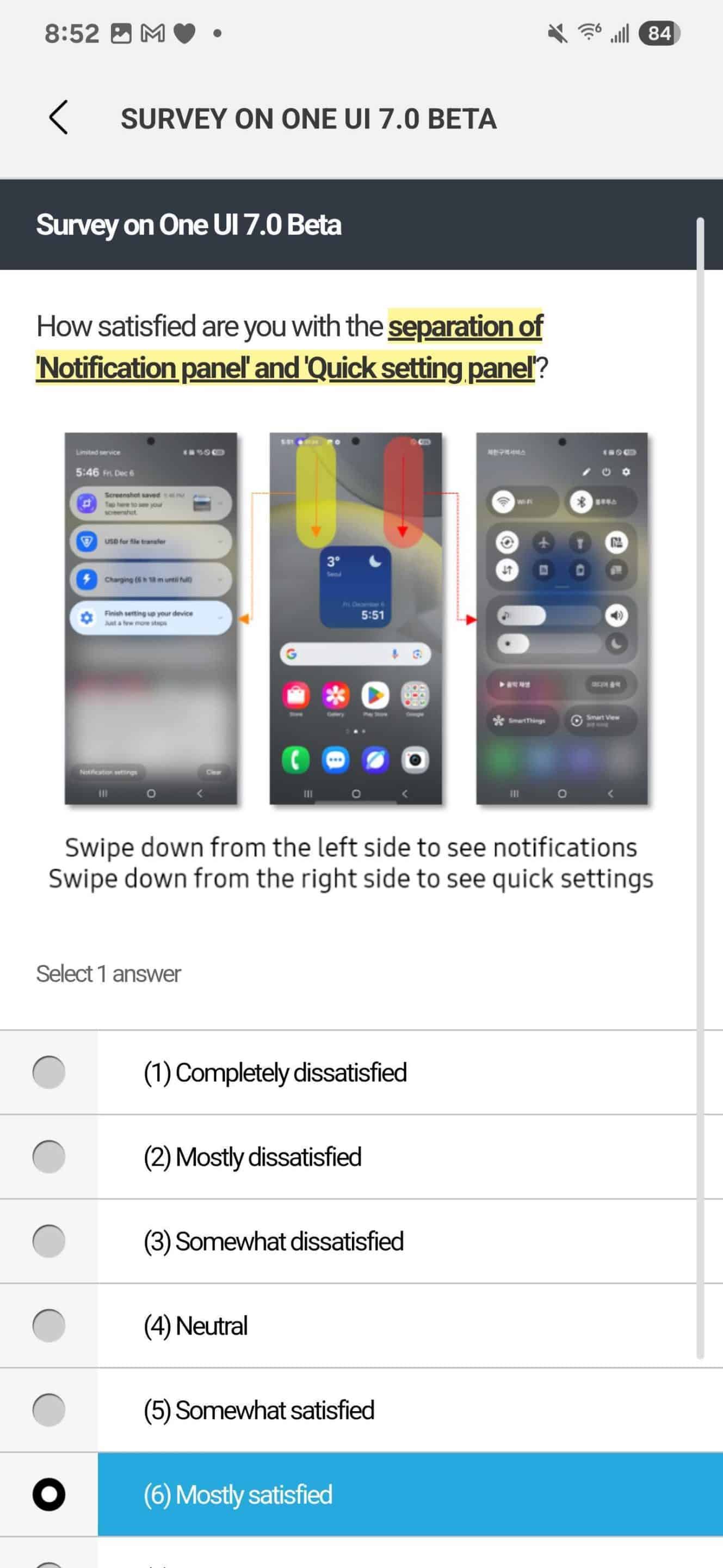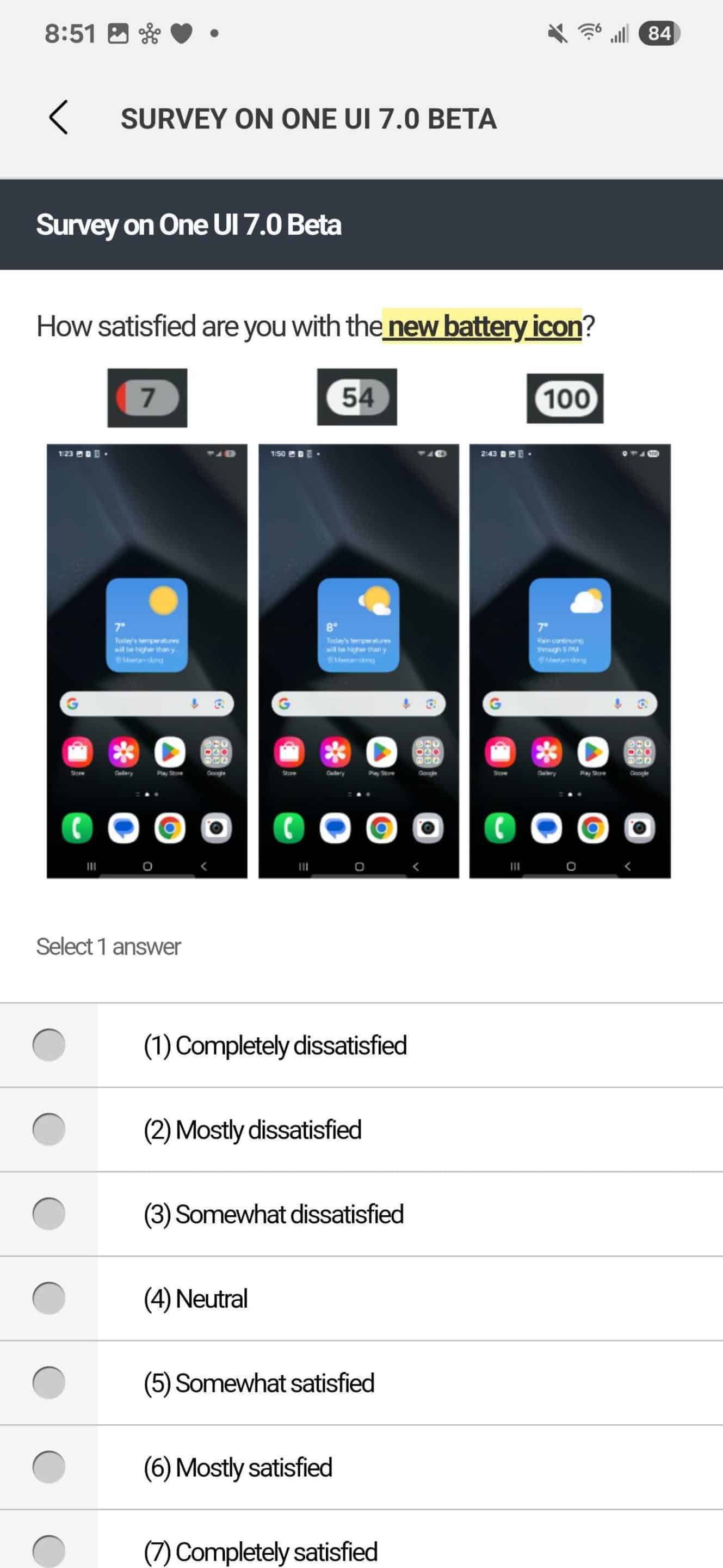 Samsung is now rolling out a survey on the One UI 7.0 beta through the Members app. It’s asking beta testers how satisfied they are with the latest features. Participants are given six (or seven) options to choose from, ranging from Completely dissatisfied to Mostly satisfied.