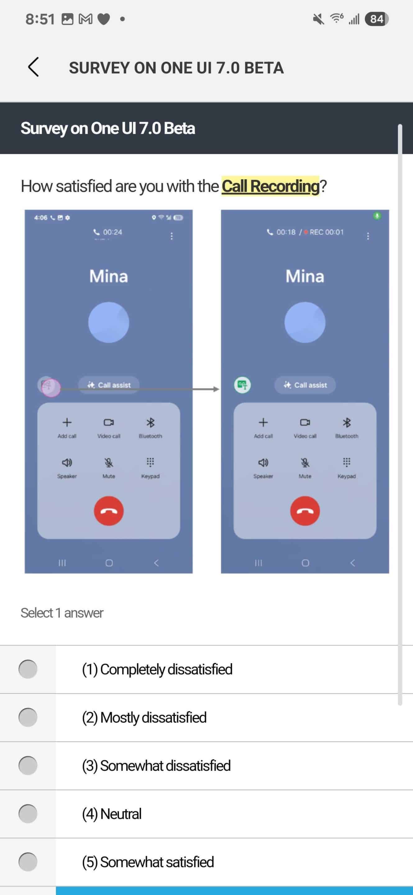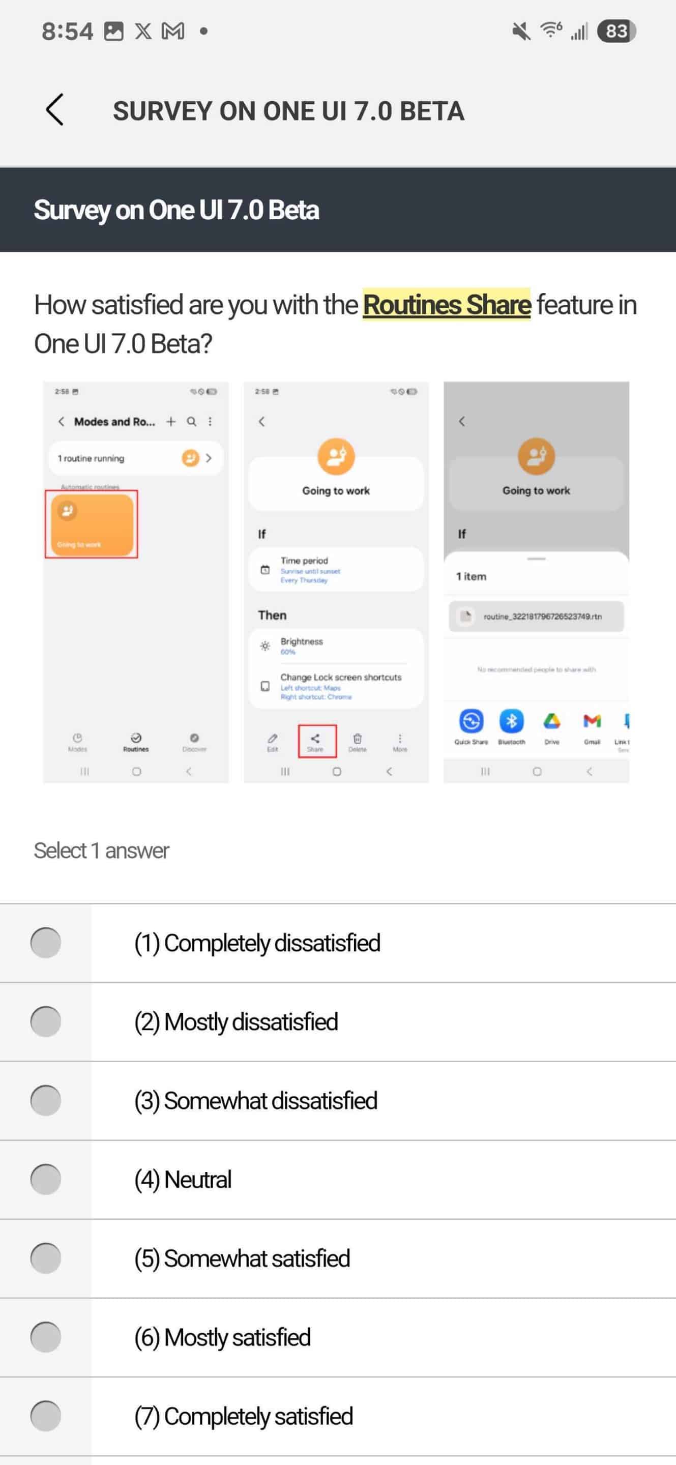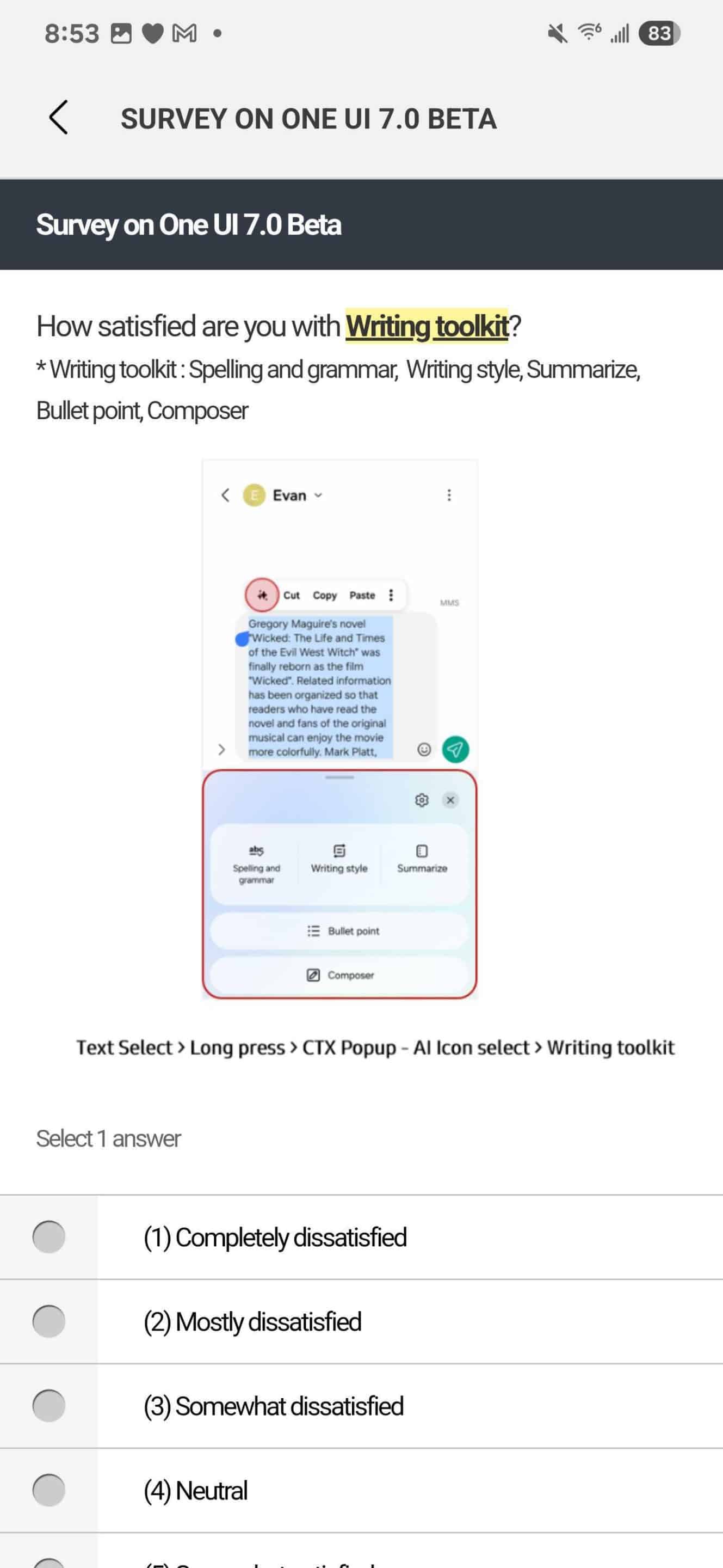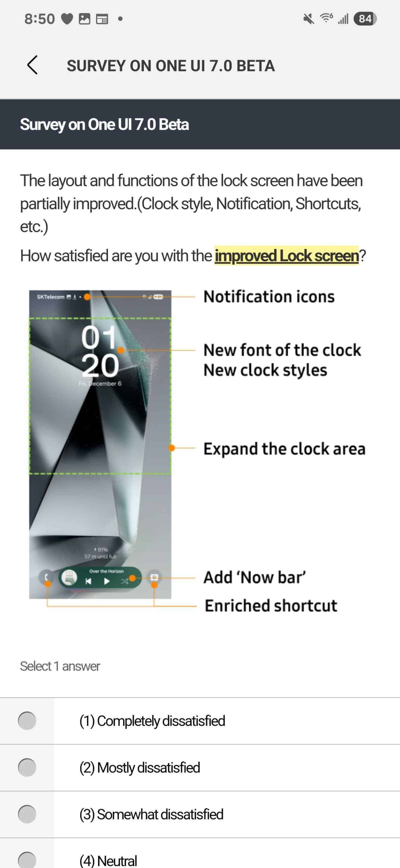 Samsung is now rolling out a survey on the One UI 7.0 beta through the Members app. It’s asking beta testers how satisfied they are with the latest features. Participants are given six (or seven) options to choose from, ranging from Completely dissatisfied to Mostly satisfied.