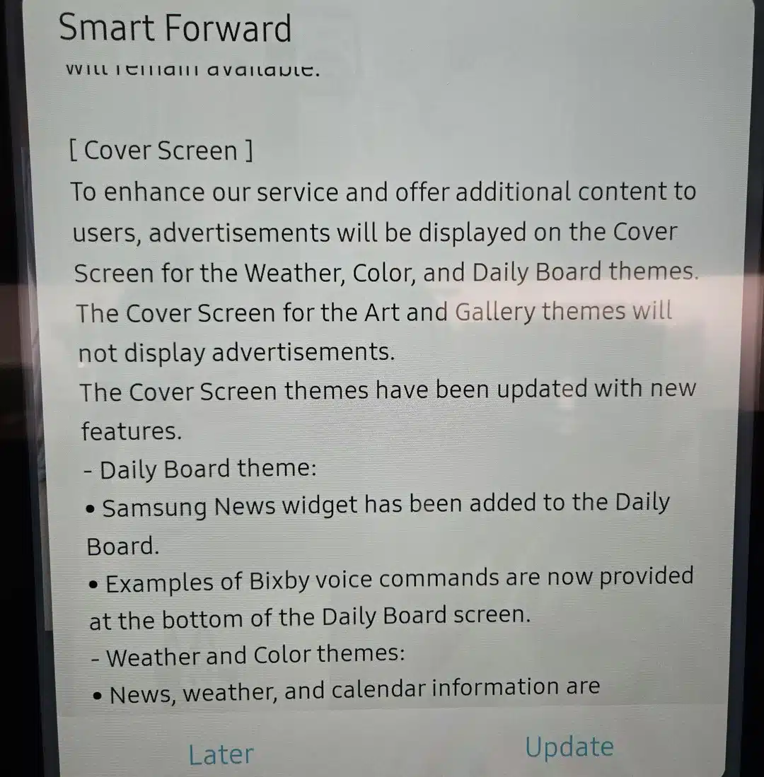Samsung says it will display ads on the cover screen to enhance its service and offer additional content to users. While the company frames this as a feature, users naturally see it as an unwanted intrusion. This move has sparked concern on social media platforms, like Reddit, with owners expressing their disappointment. It looks like the Korean firm is leaning towards monetization over user experience for its smart home appliances.