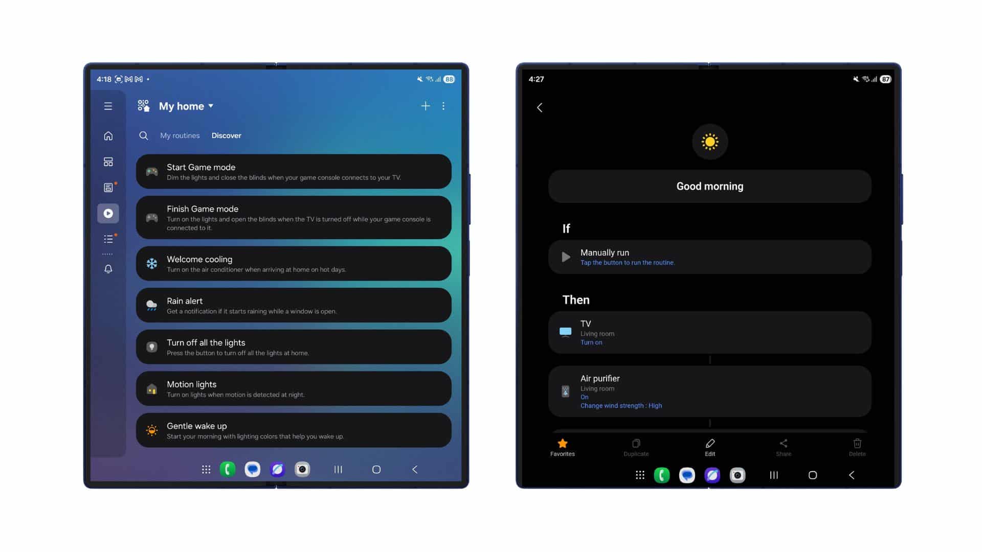 SmartThings also offers automation tools like Routines to schedule tasks automatically. For example, you can set the air conditioner to turn on before you arrive home. Similarly, it lets you configure the porch light to turn on at 5 PM and off at 6 AM. Meanwhile, the Modes feature offers another level of convenience. For example, selecting “Focus Mode” can reduce the vacuum cleaner’s noise and play soft music on your Smart TV.