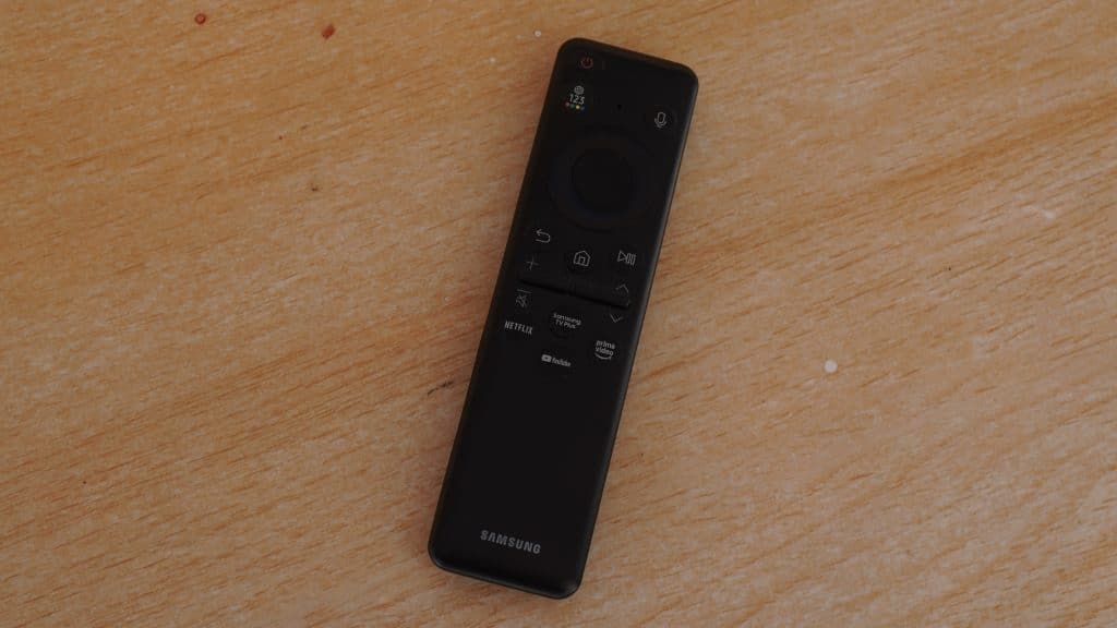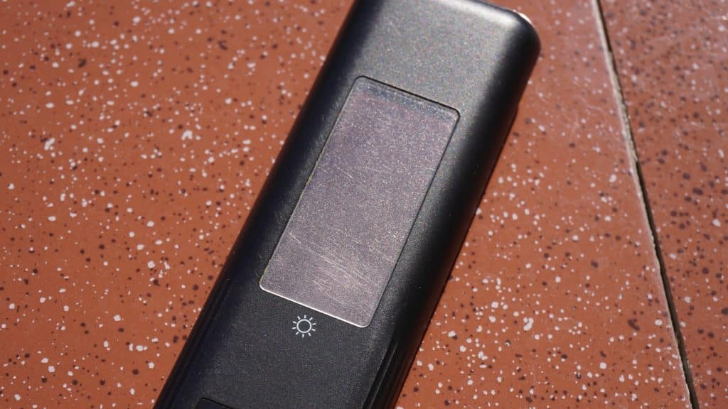 It’s compact, it’s clean, it’s eco-friendly, and it features tactile buttons instead of mushy silicone, making every press feel premium. But that’s not the best part. This remote finally puts an end to the “Where did the AAA batteries go?” argument in my house. Samsung’s SolarCell Remote includes a built-in battery that can recharge using sunlight. Just place it out in the sun with the back facing up, and the solar panel will top it up automatically.