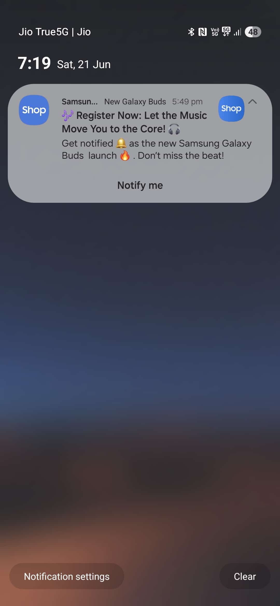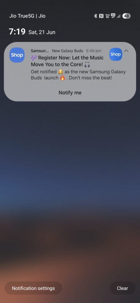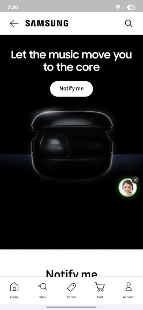 Samsung India has started teasing what’s on the way on X. The post reads, “Let the music move you to the core,” hinting at the name. The post includes a link that takes you to the landing page, which has multiple mentions of the “Galaxy Buds Core”. Alongside that, the Samsung Shop app has also started sending push notifications about the same, which you can see below.