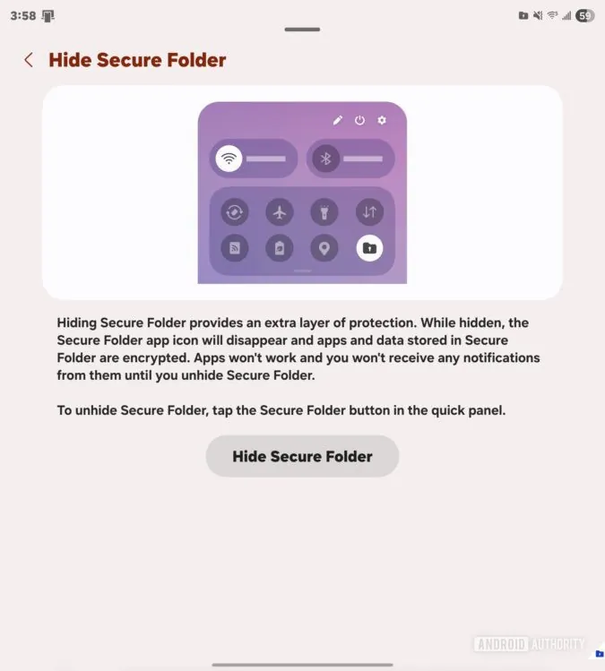It is worth noting that the enhanced protection only works when you fully hide the Secure Folder. Simply closing the folder after adding your private files won’t provide the same level of security. Once you hide the folder, it removes its icon from the app drawer and fully encrypts its contents. This ensures that the system doesn’t run background activity of secured apps or push any notifications.