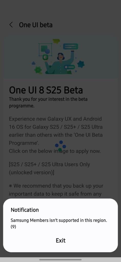 However, despite being eligible for the beta program, some users are experiencing issues during the signup process for the beta on the Samsung Members app. An affected user wrote on X, “I keep getting this message: Samsung Members isn’t supported in this region.” The user is from the UK and tried to join using a Galaxy S25 smartphone.
