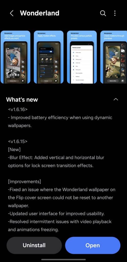 Samsung has updated its Wonderland app, a Good Lock module, with version 1.6.16. The update focuses on improving battery efficiency when using dynamic wallpapers on your Galaxy device. The company should push the new build to all eligible Galaxy users globally in the coming days.
